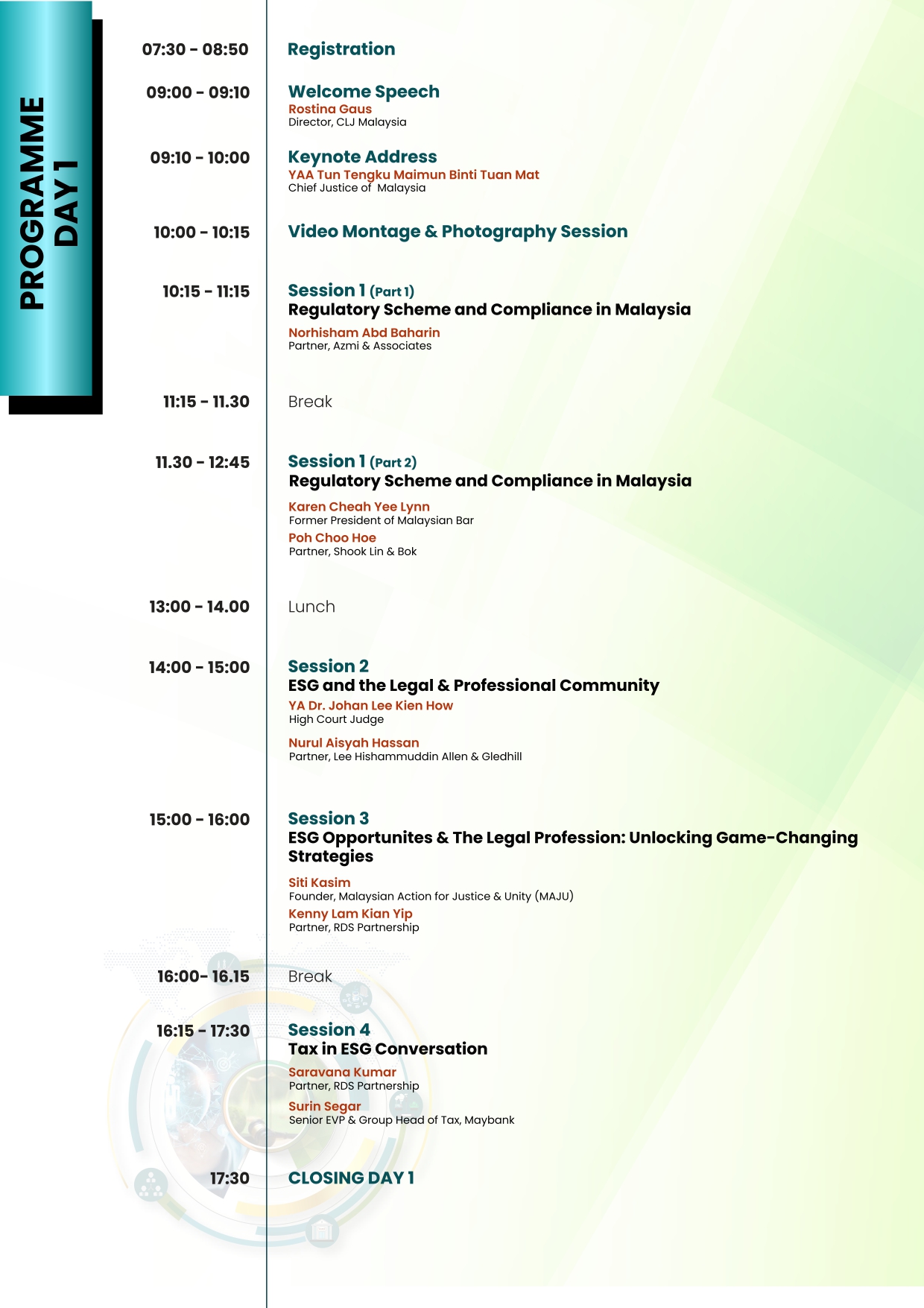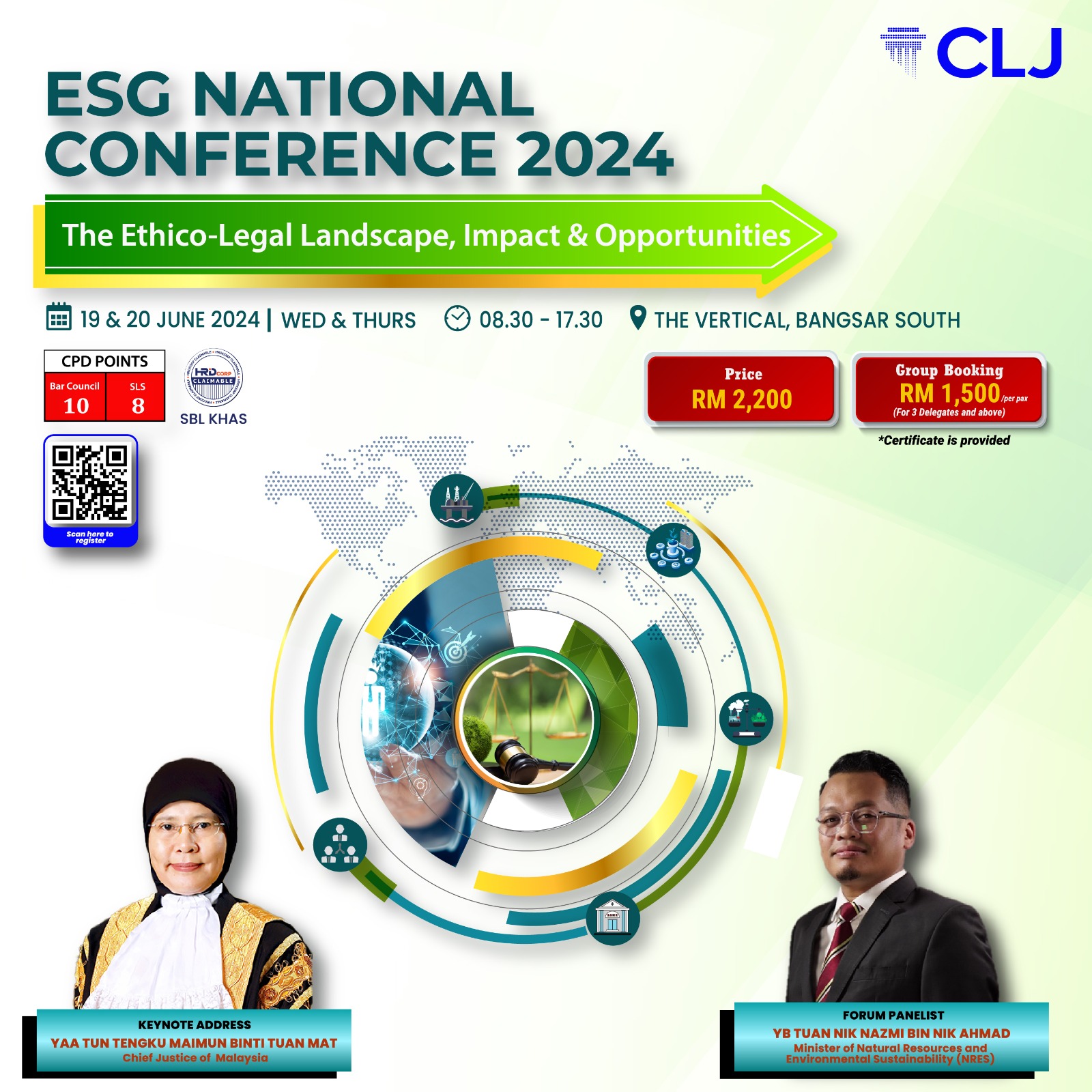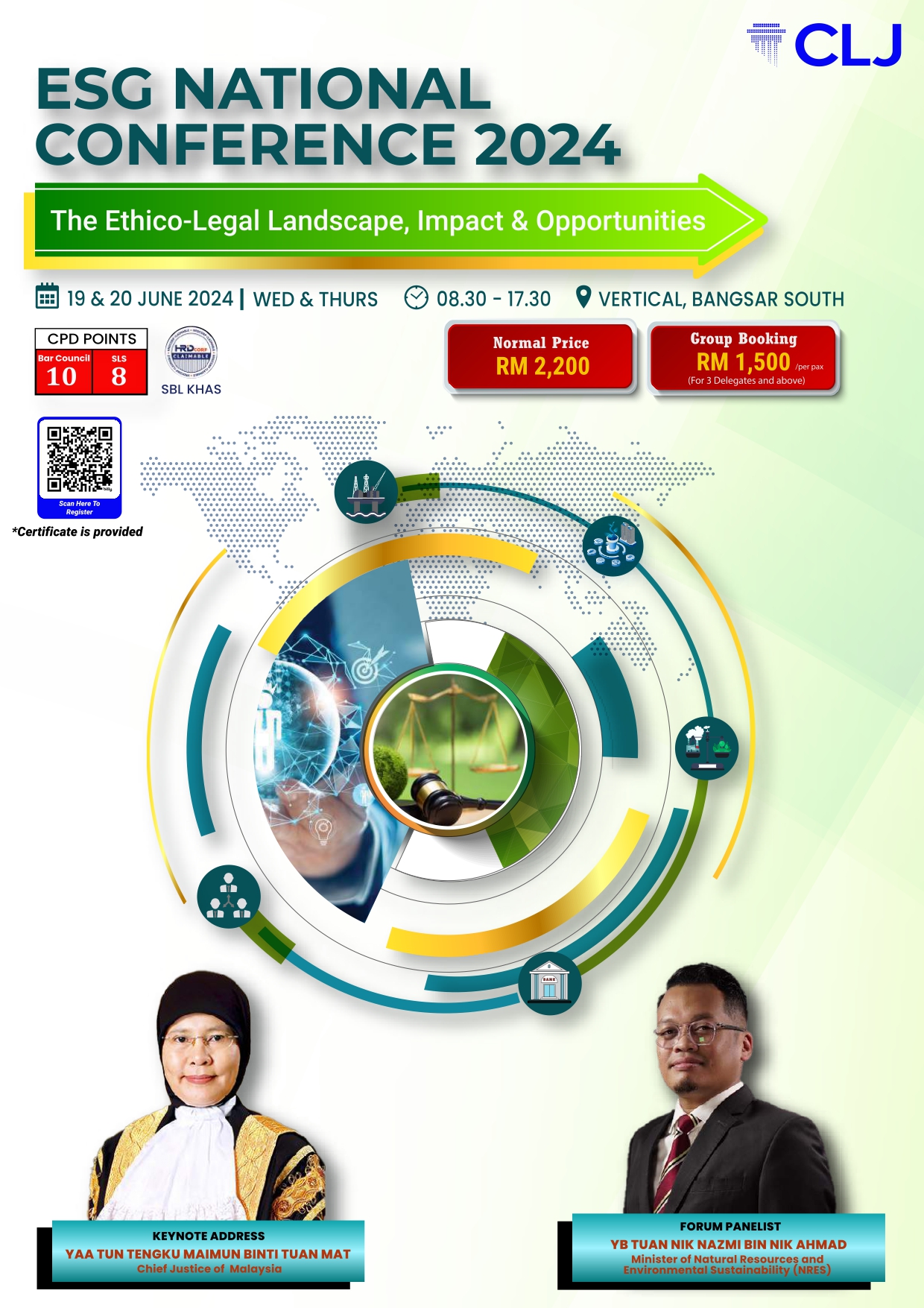 A confirmation email will be sent to each delegate after payment is processed by CLJ. If you do not receive a confirmation by 1 June 2024, please call us at (603) 4270 5400.